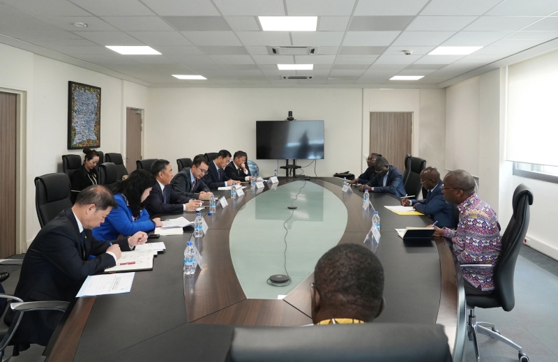 當地時間10月25日,中國能建黨委書記、董事長宋海良在阿比讓與科特迪瓦水利、衛生與健康部部長布瓦凱·...